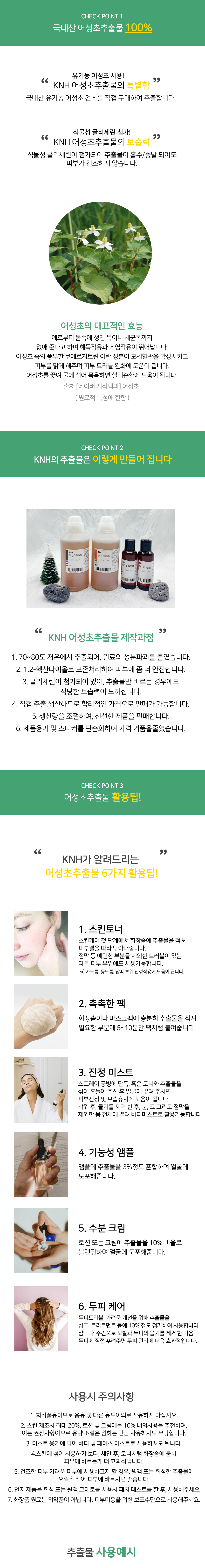 추출물 10~20%를 스킨 또는 정제수에 희석하여 사용하세요.
